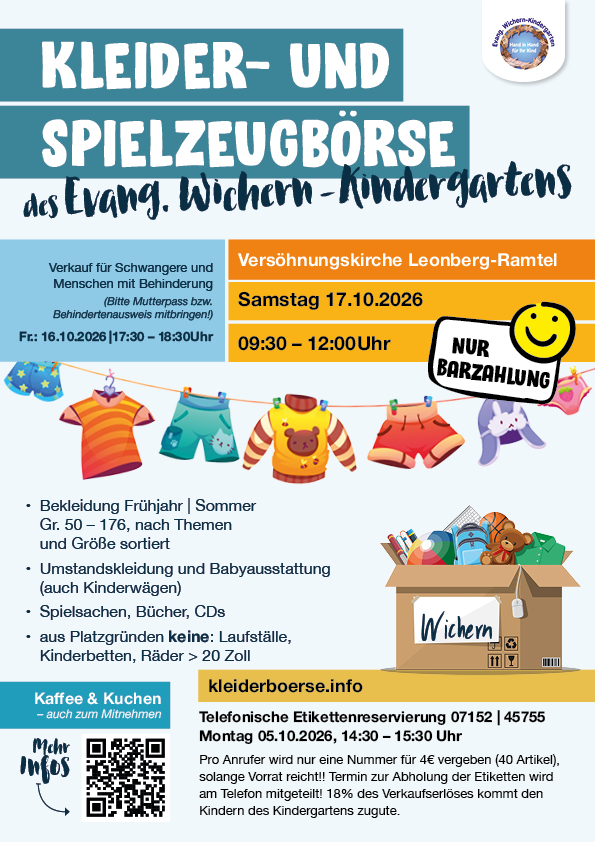 In unseren News erfahren Sie alles Wichtige rund um die Kleider- und Spielzeigbörse des evang. Wichern-Kindergartens in Leonberg Ramtel – von Terminen bis zu besonderen Aktionen. Schauen Sie regelmäßig vorbei und bleiben Sie informiert!